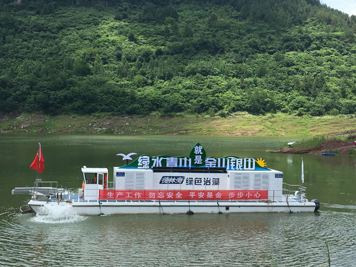 公司研發(fā)的加壓控藻船,以玻璃鋼船體為平臺(tái),配置藍(lán)藻打撈、壓力控藻和曝氣裝置...